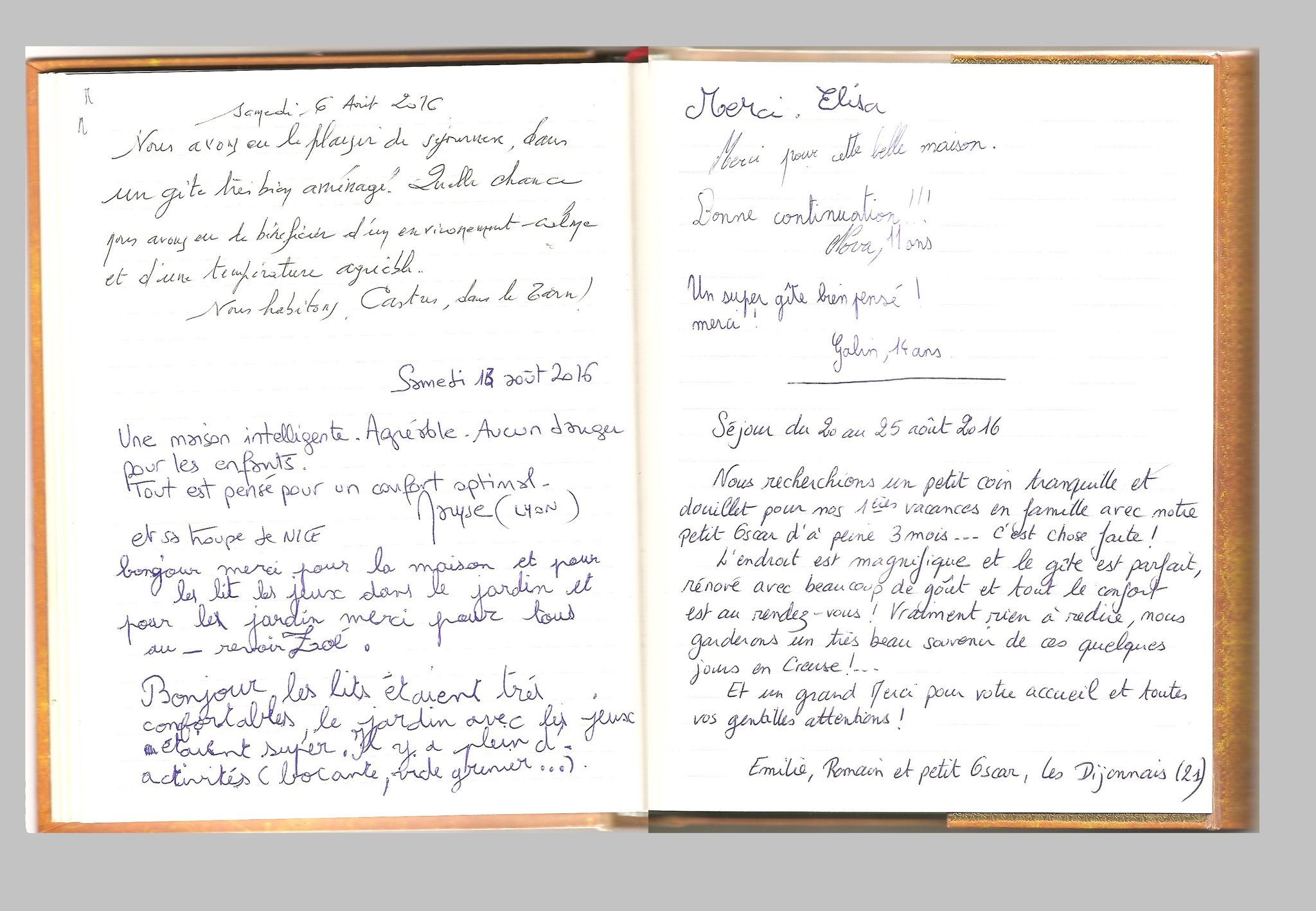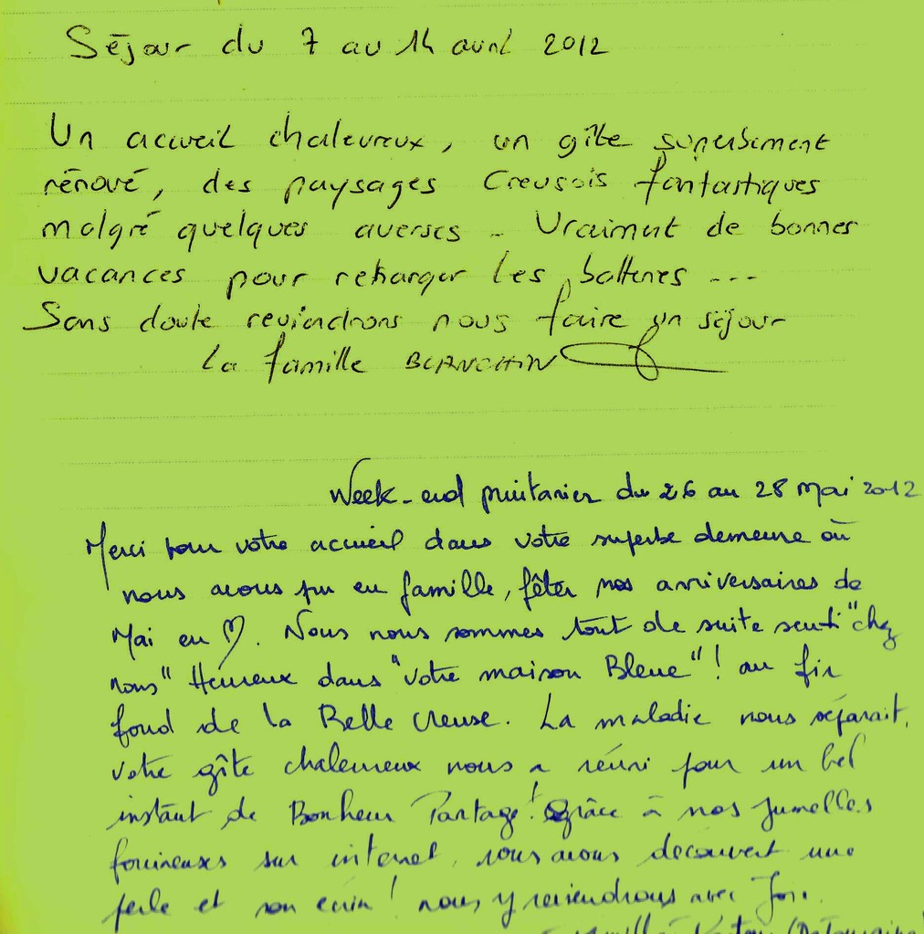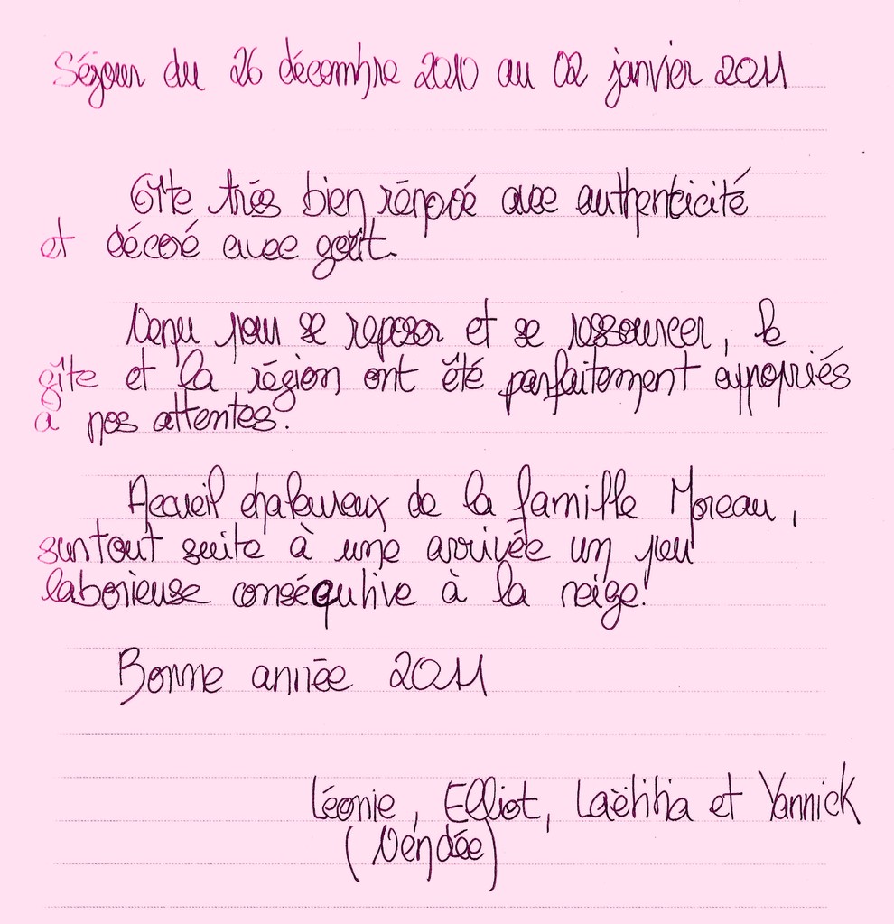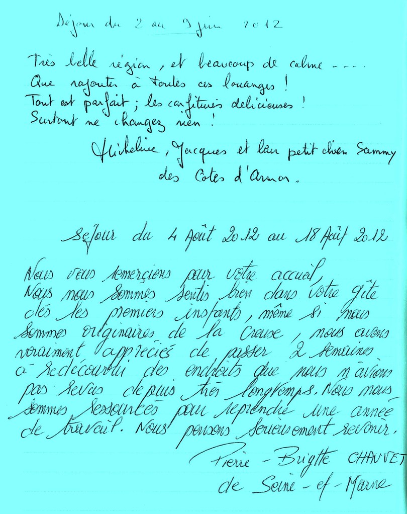 Voici quelques extraits du livre d'or de notre gîte lors de la saison 2010 :