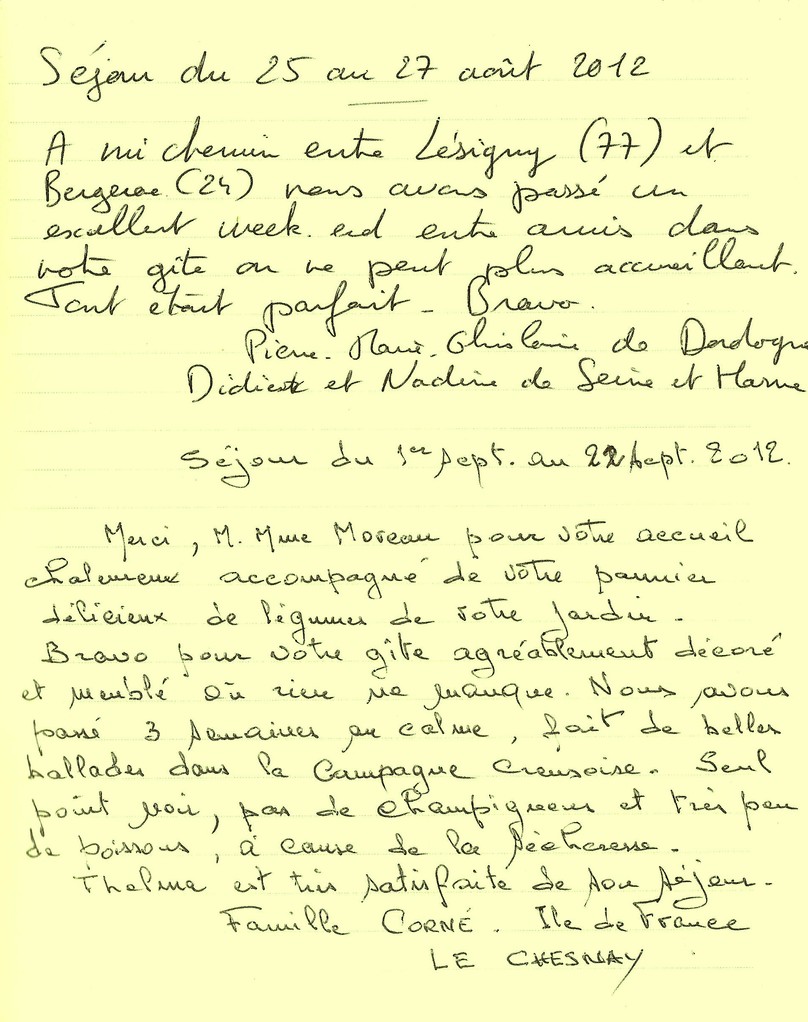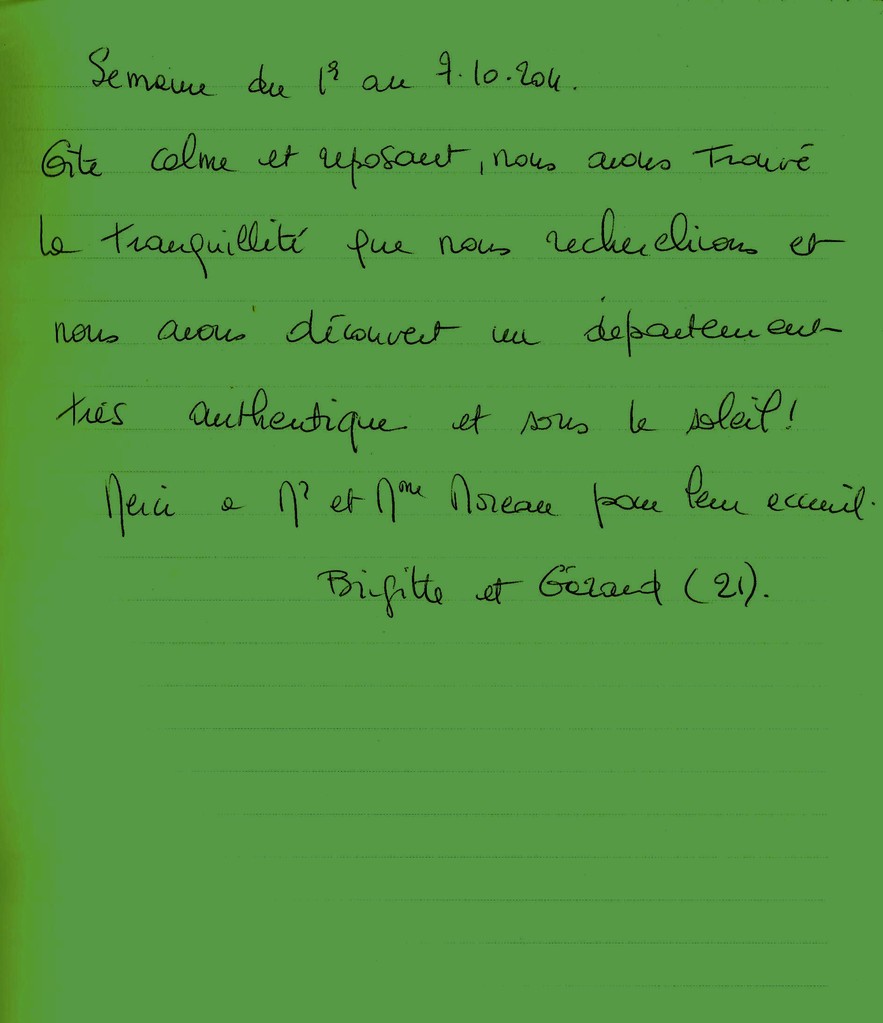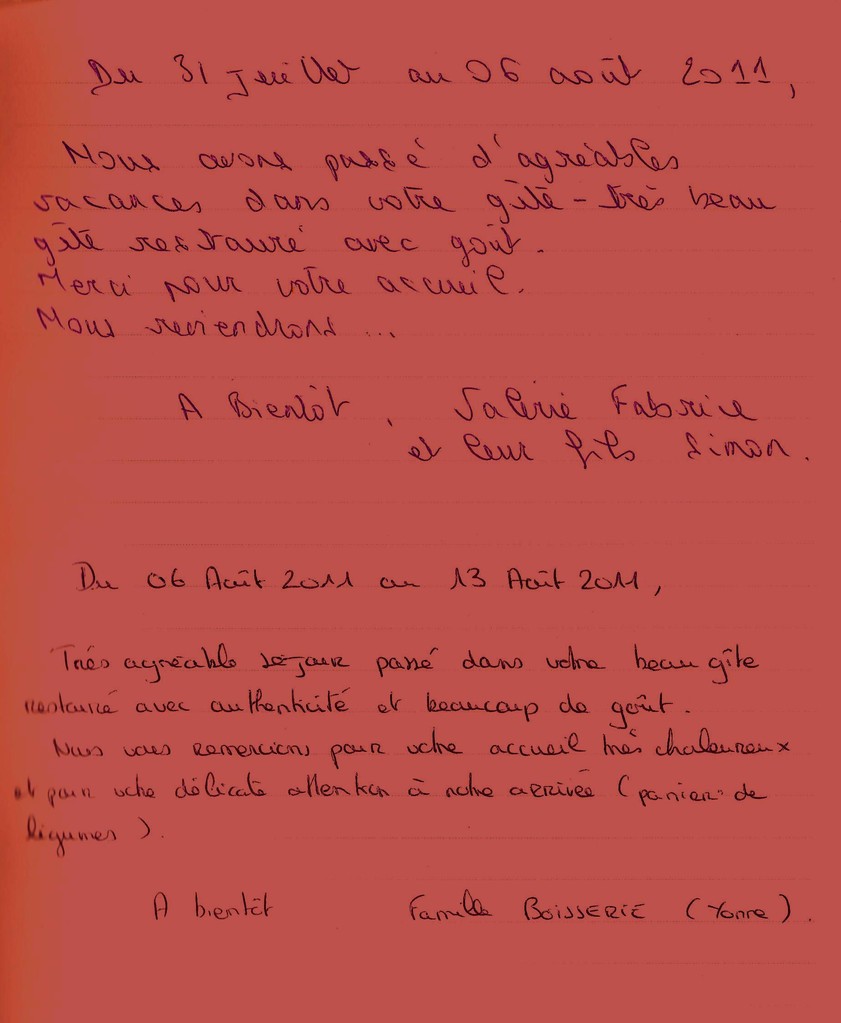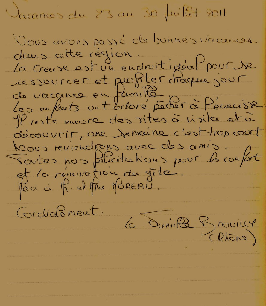 Voici quelques extraits du livre d'or de notre gîte lors de la saison 2010 :