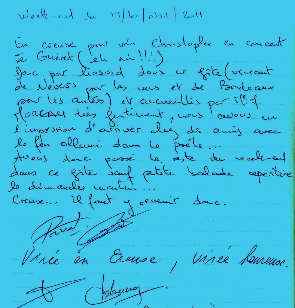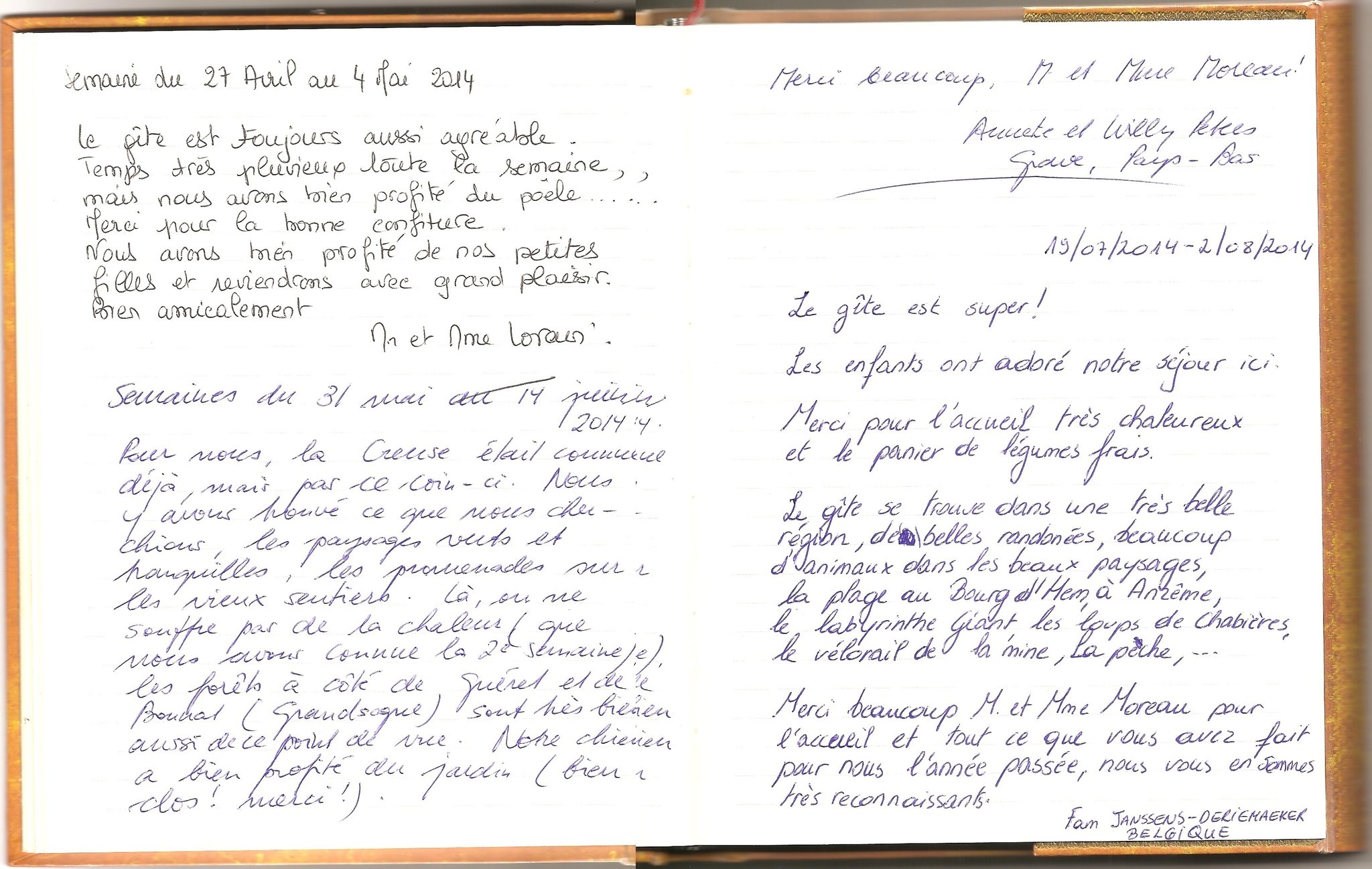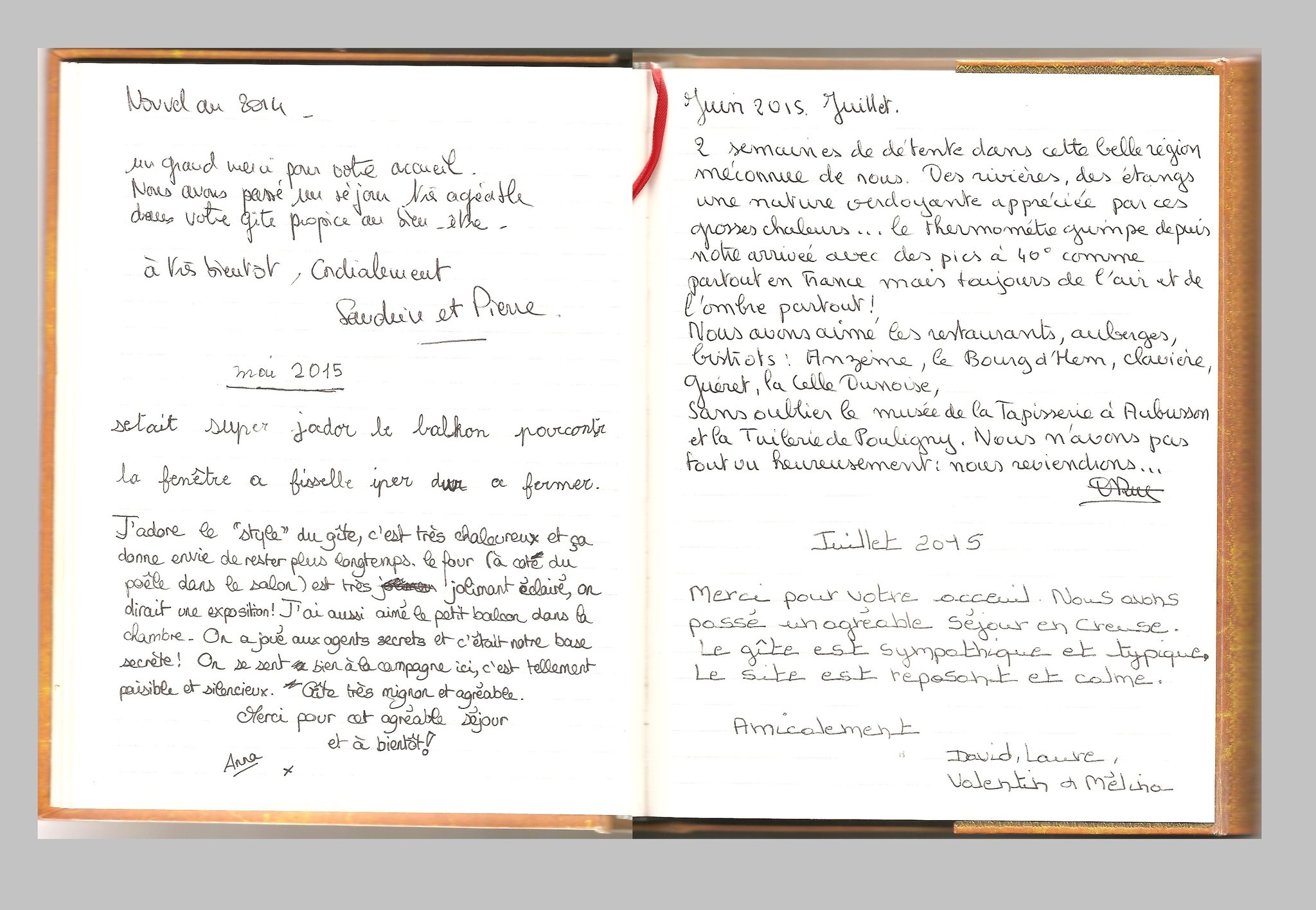 Voici les derniers extraits du livre d'or lors des saisons 2014, 2015 et 2016 :